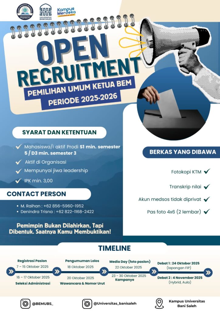 Open Recruitment Calon Ketua dan Wakil Ketua BEM Periode 2025-2026