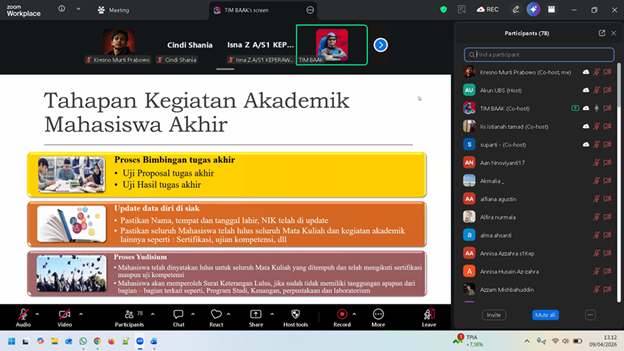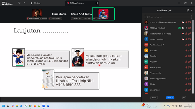Pihak BAAK berharap sosialisasi ini dapat membantu mahasiswa dalam mempersiapkan diri menghadapi tahapan akhir perkuliahan dengan lebih baik dan tepat waktu.