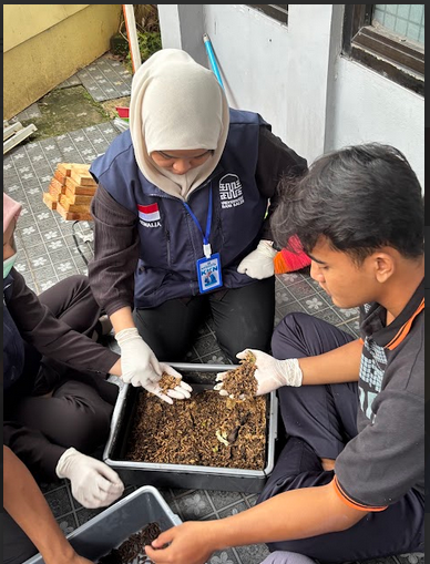 Menjawab tantangan sampah organik yang seringkali menjadi polusi aroma, KKN UBS 2025 memperkenalkan metode Budidaya Maggot (Black Soldier Fly).